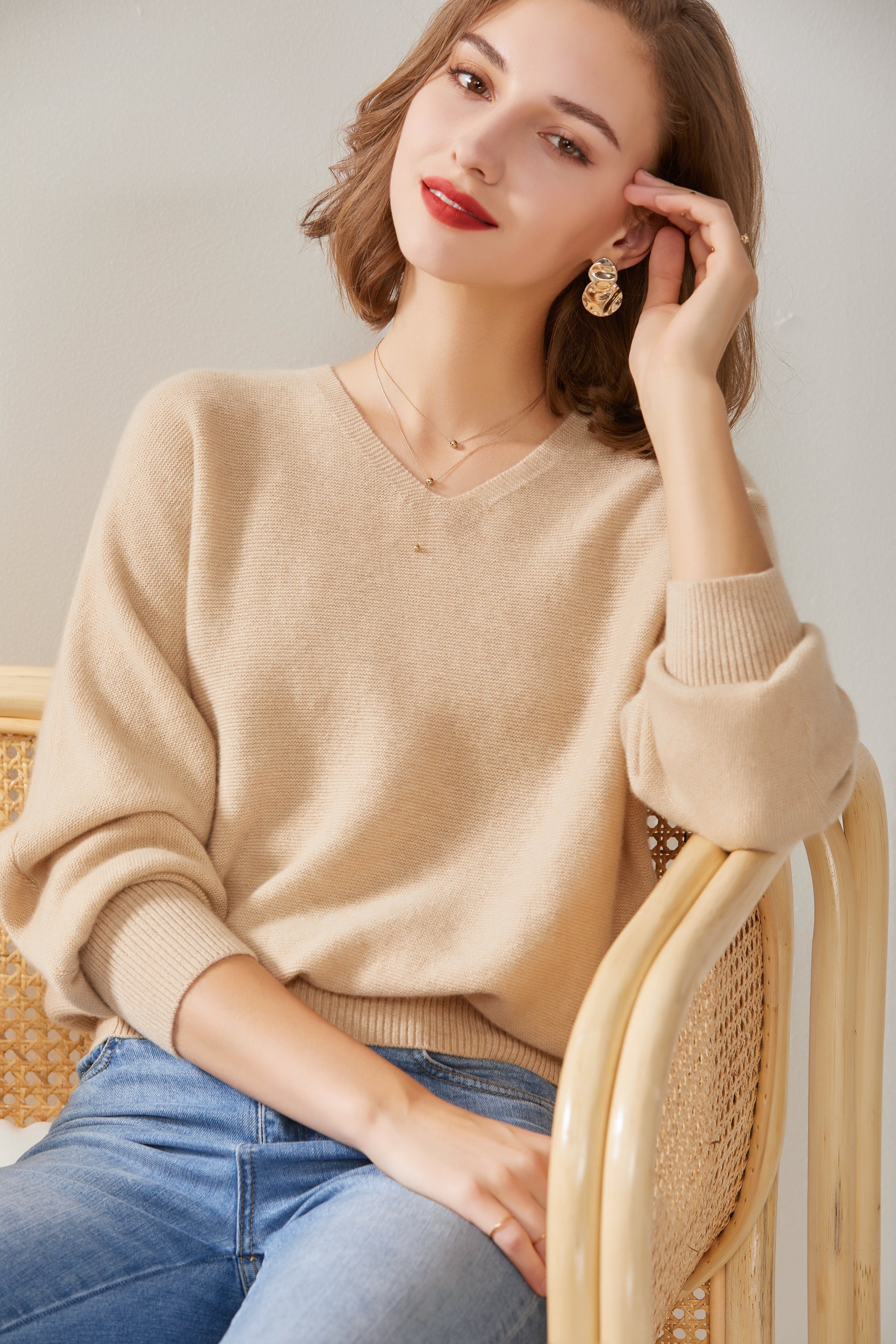 Ткань: 100% кашемир Средний вес: 270 г. Количество игл: 12 G Номер пряжи: 26S/2 Процесс прядения: Шерстяной